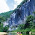The river has some deep turquoise sections and shallow dark blue sections with towering bluffs framing the length of the river on both sides.